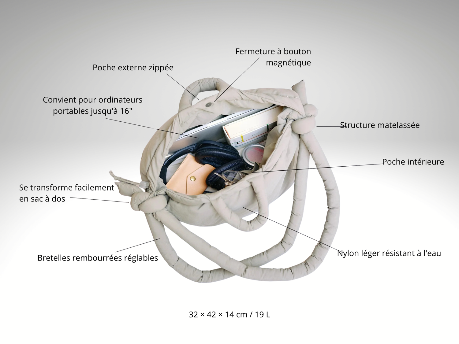 - Portez-le comme un sac à main, un sac bandoulière ou un sac à dos.